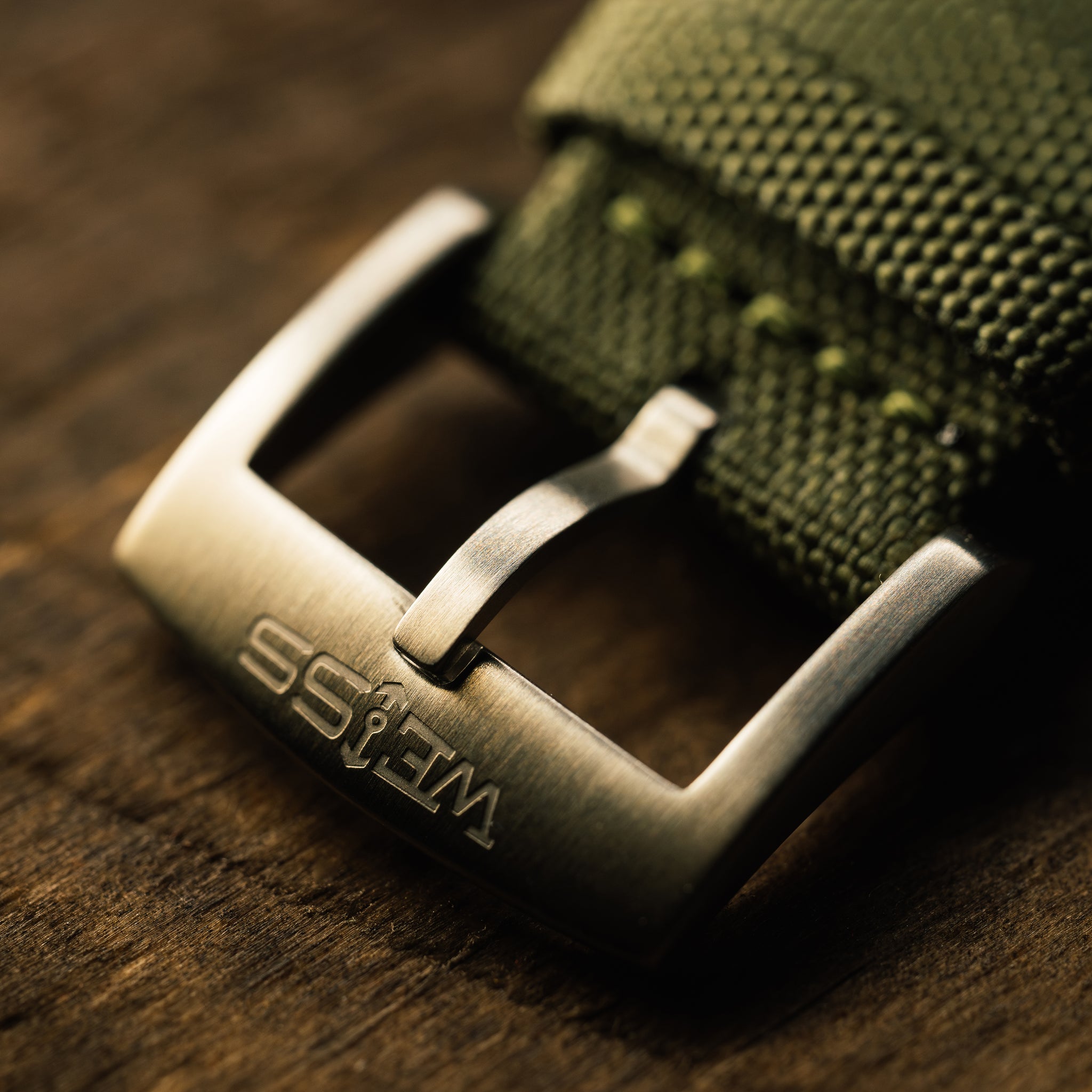 Finished and assembled by hand, the Weiss Caliber 2130 is a 2892-A2 base, finished and assembled by hand based automatic movement. Water-resistant (up to 300 feet to be exact) and ultra-light, it features new details like a sweeping seconds and a custom dial-matching date wheel. With a solid 42-hour power reserve, it's designed to last – and look good doing it. Sapphire crystals accentuate the back, while stainless steel completes the case. The hands are finished in black oxide treated steel with white super-luminova BGW9 paint. And the dial? It boasts hand-painted, timeless naval brass. Each timepiece comes with one hand-stitched strap of your choice.