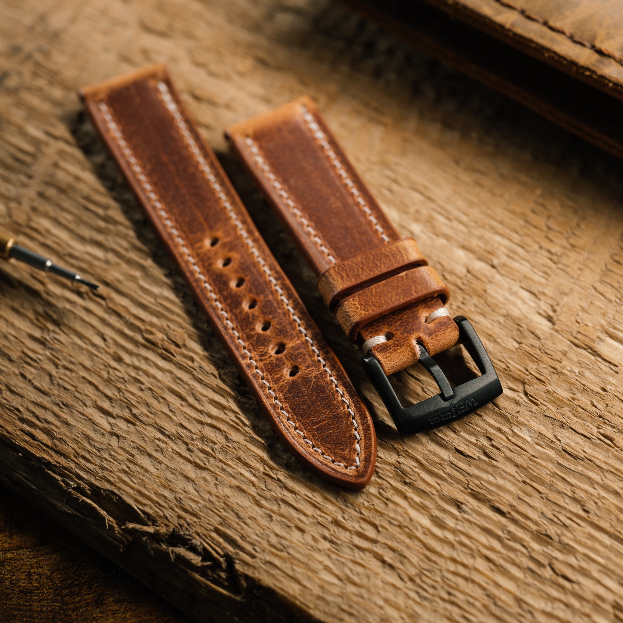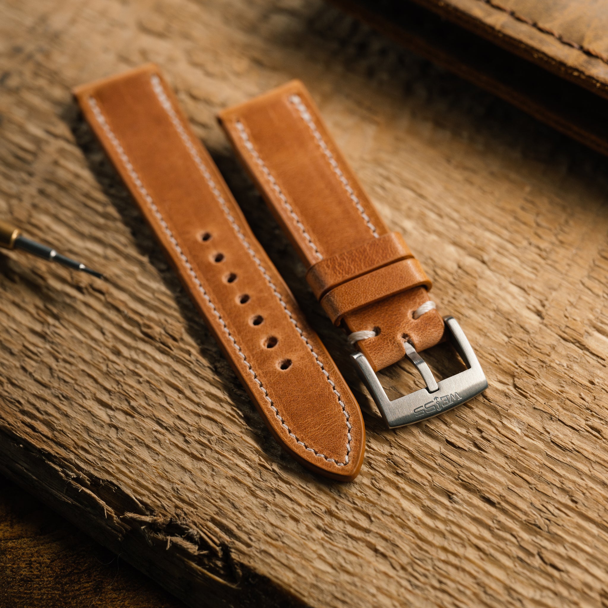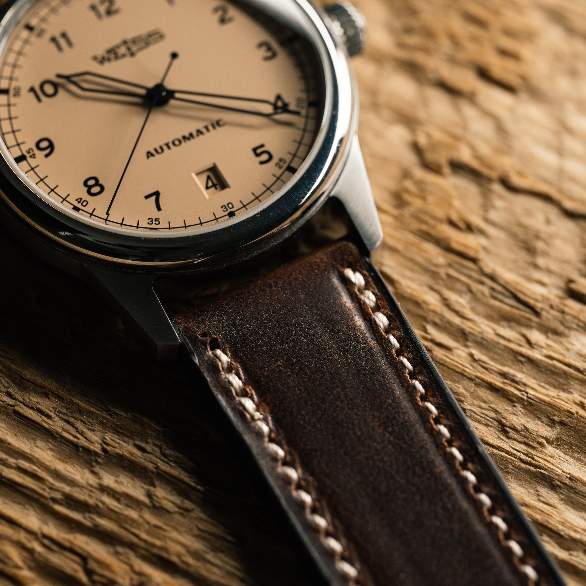 Since each one is handcrafted, each strap has its own unique characteristics from the tanning process and handmade nature of the product. The strap is designed for comfort and is made specially to fit the Field Watch.